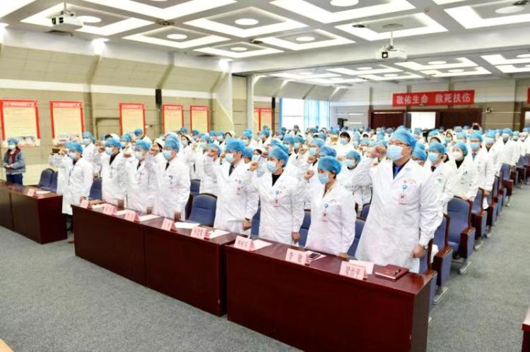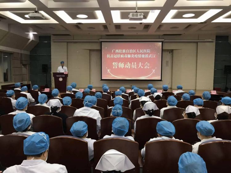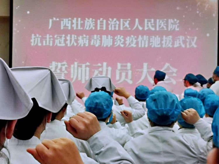 1月26日上午,广西壮族自治区人民医院举行抗击新型冠状病毒肺炎疫情驰援武汉誓师动员大会。