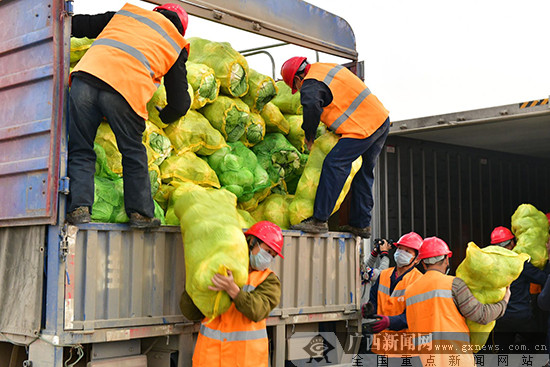 广西驰援湖北果蔬专列发车现场。广西新闻网记者 宋瑶 摄