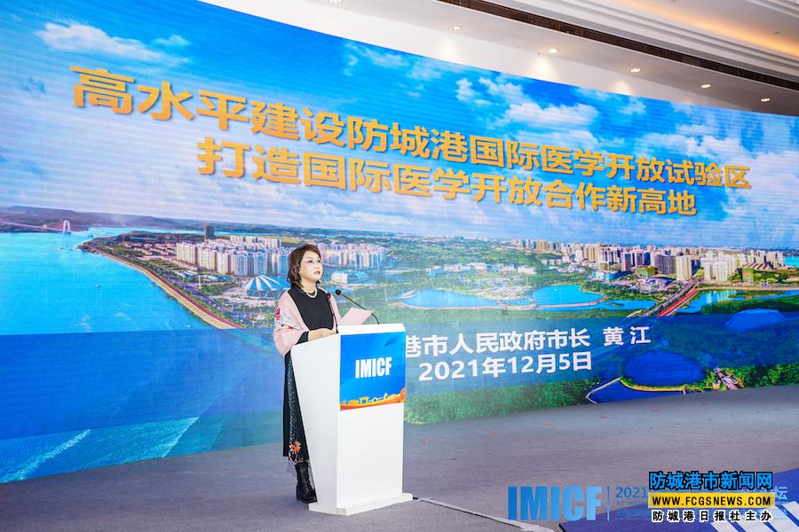 2021年12月5日,防城港市市长黄江出席2021国际医学创新合作论坛招商推介会并致辞。